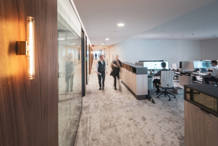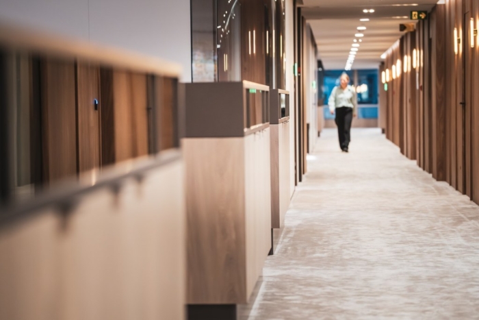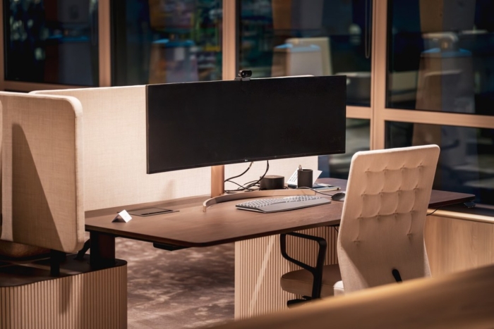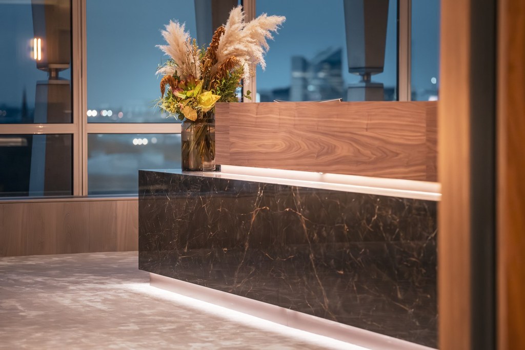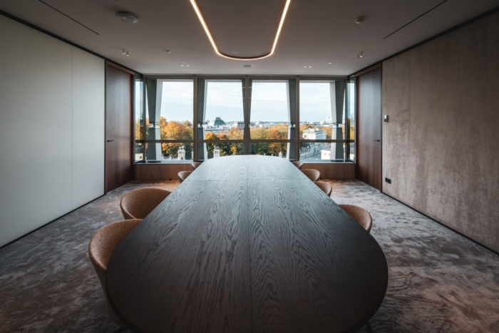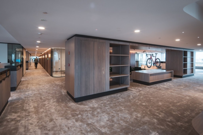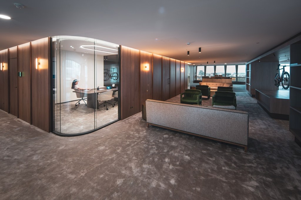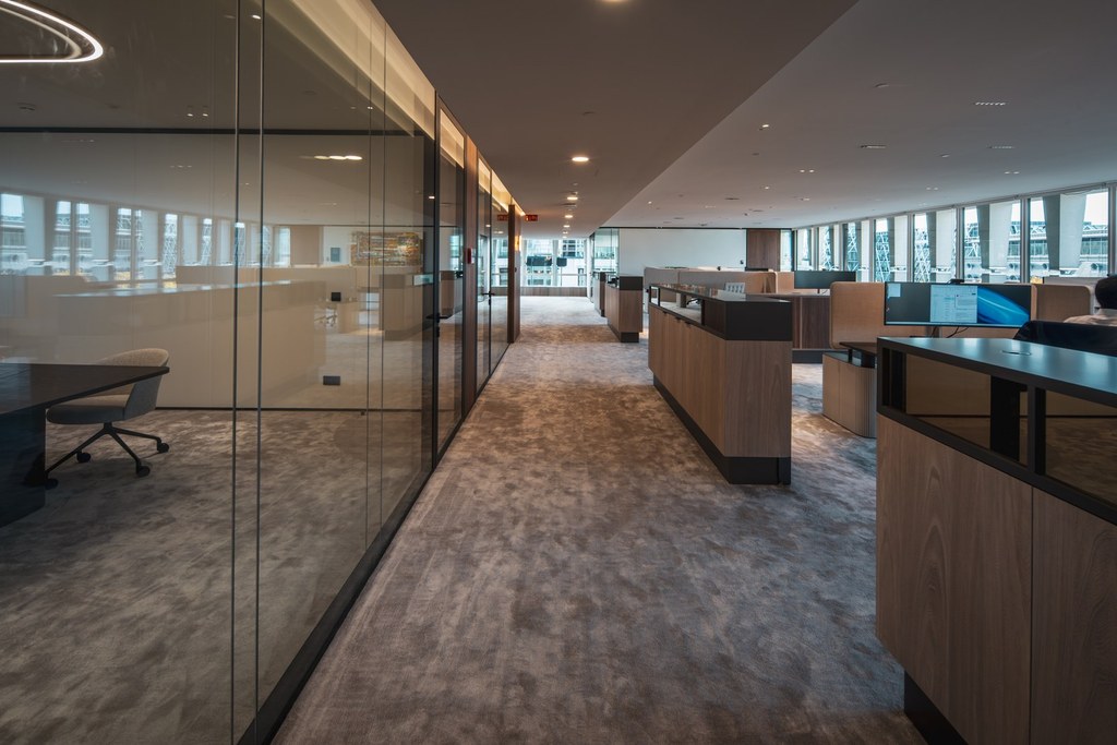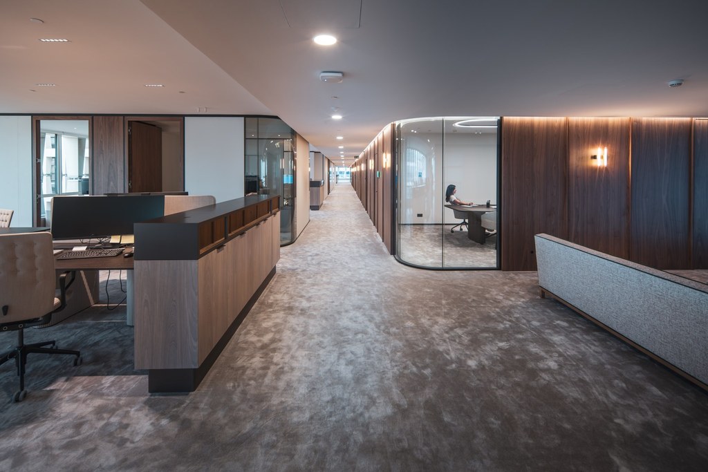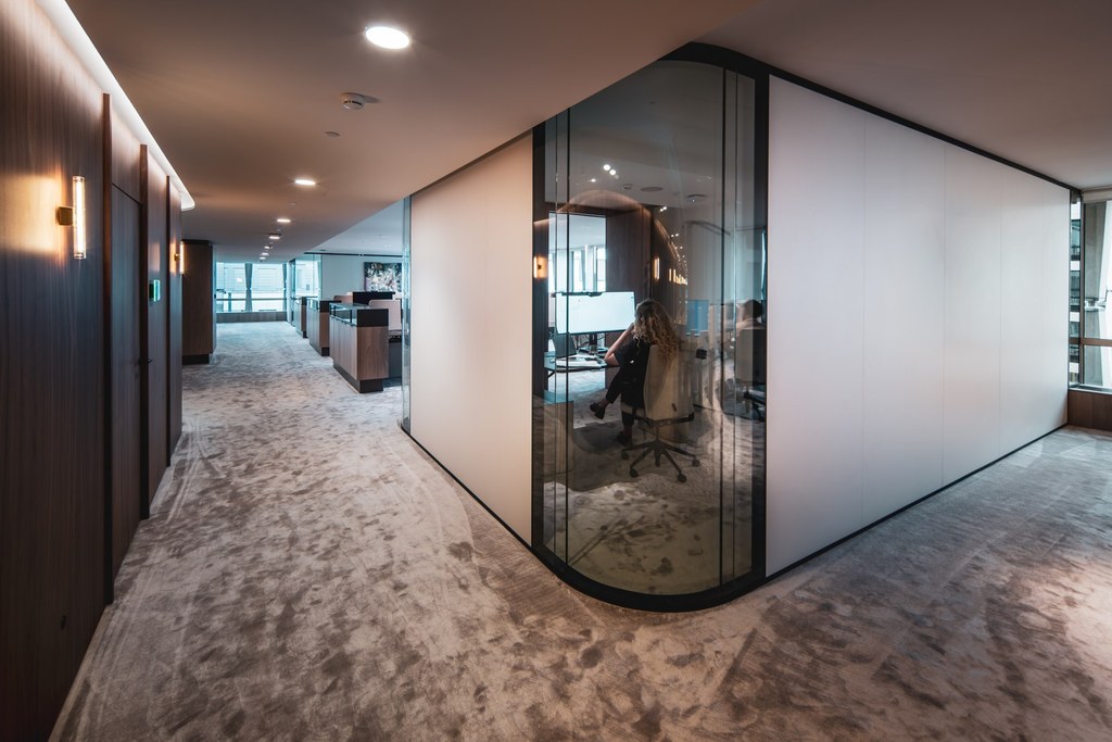 Set within an emblematic building in Brussels, this office floor was ready for a new chapter. Our client wanted to renew its workspace with a clear ambition: improve employee wellbeing while creating a material language that resonates with its clientele. We responded with a plan shaped by rounded corners instead of rigid angles. At every intersection, space opens up slightly more than expected, generating a subtle yet powerful sense of generosity across the floor. Circulation becomes fluid, encounters feel natural, and the workplace breathes. By materialising these curves in transparent elements, the effect is amplified, allowing light, views and movement to flow freely. The result is an office that feels both attentive and expansive, where geometry quietly supports human experience.